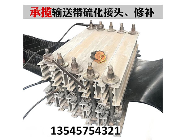 膠帶硫化接頭 平型傳動帶或輸送帶用平板硫化機(jī)硫化時,是按硫化機(jī)的長度分段進(jìn)行的,在每段銜接處,需有一小段銜接下一段硫化,再加壓硫化一次,這一小段叫硫化接頭,該部位硫化采取通冷卻水降低硫化溫度的措施,以避免發(fā)生過硫。